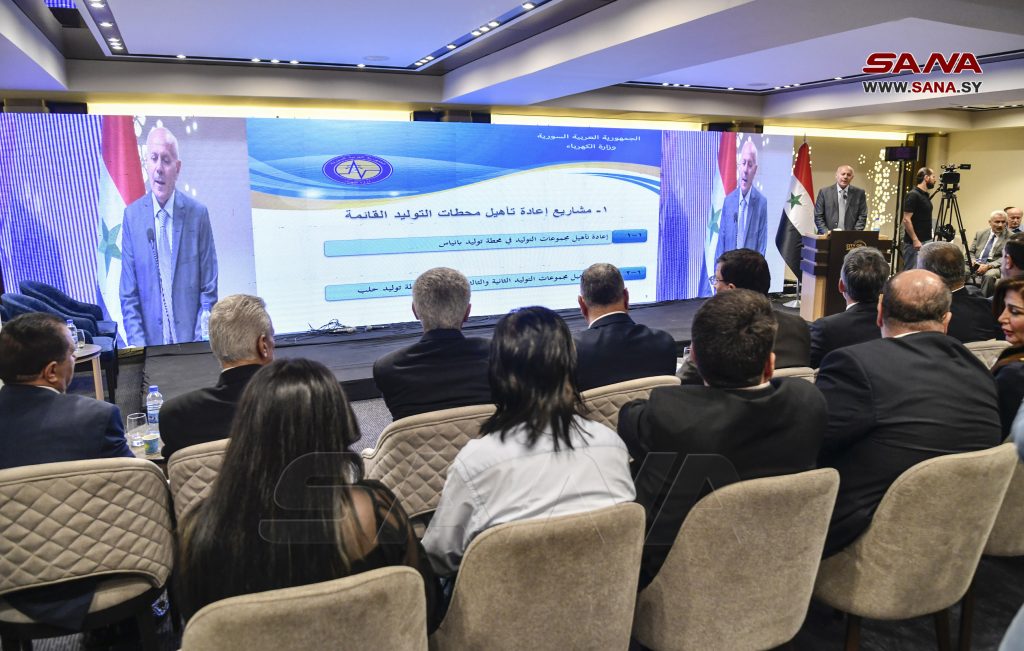 بدوره قدم مدير عام مؤسسة نقل وتوزيع الكهرباء المهندس فواز الظاهر لمحة عن شبكة نقل وتوزيع الكهرباء والأضرار التي لحقت بها وواقع إعادة التأهيل لمكونات الشبكة وفرص الاستثمار الخاص في شبكة التوزيع والبنية القانونية والتشريعية وآليات التنفيذ.