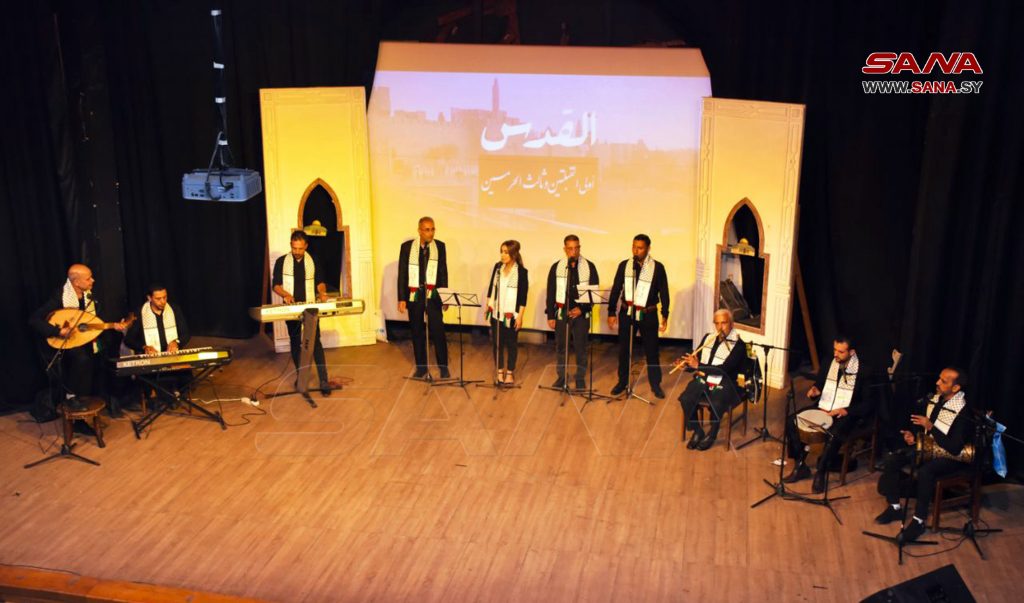 وتضمنت الفاعلية فقرات فنية وأغاني من الفلكلور والتراث الفلسطيني إضافة إلى مشاهد مسرحية تضامناً مع الشعب الفلسطيني الشقيق وقضيته العادلة بمواجهة الكيان الصهيوني.