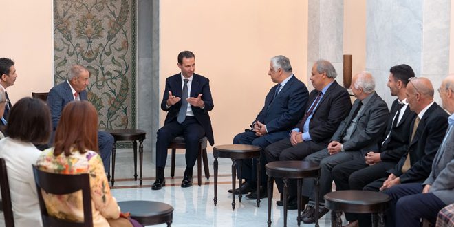 2022-05-16 الرئيس الأسد يلتقي أعضاء الأمانة العامة لاتحاد الجاليات والفعاليات والمؤسسات الفلسطينية في الشتات-أوروبا 2022-05-16anwar
