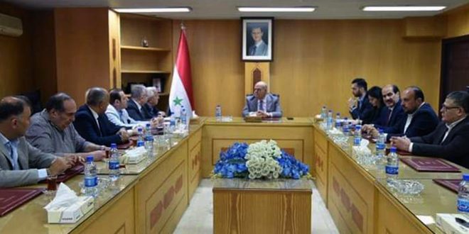 بحث وزير التجارة الداخلية وحماية المستهلك الدكتور عمرو سالم مع رئيس وأعضاء مجلس إدارة الغرفة التجارية السورية الإيرانية المشتركة قضايا العلاقات التجارية والاستثمارية بين سورية وإيران وسبل تطويرها وتجاوز الصعوبات التي تواجهها بما يدعم الاقتصاد الوطني.