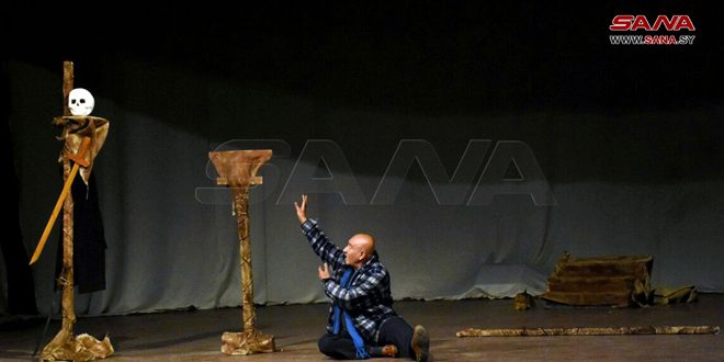 العرض الذي نظمه منتدى غسان كنفاني الثقافي بالتعاون مع مديرية ثقافة حمص يحكي قصة فنان مسرحي هجر من بلده الأم فلسطين إلى سورية وخلال سنوات الحرب الإرهابية عليها عاش التهجير مرة أخرى عندما خرج من منزله وعانى صعوبة العيش وضيق الحال وتداعيات الحرب الإرهابية وآثارها السلبية رافضاً أن يغير مبادئه ورسالته وإيمانه بوطنه.