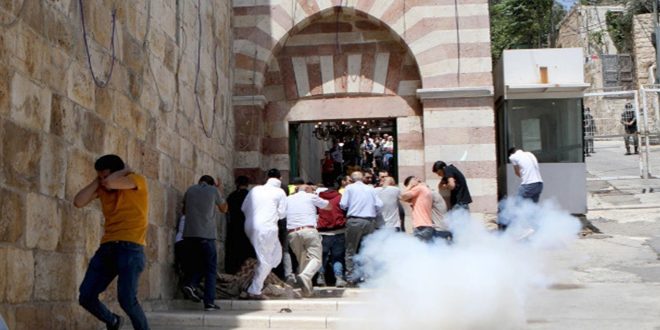 أصيب عشرات الفلسطينيين اليوم جراء اعتداء قوات الاحتلال الإسرائيلي عليهم في محيط الحرم الإبراهيمي بمدينة الخليل في الضفة الغربية.