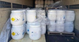 قدم فرع الهلال الأحمر العربي السوري في محافظة درعا اليوم كمية 40 طناً من مواد تعقيم مياه الشرب لمؤسسة المياه في المحافظة.