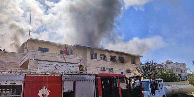 أخمد عناصر فوج إطفاء حماة اليوم حريقاً اندلع في الطابق الثاني بمبنى فرع منظمة الهلال الأحمر العربي السوري في مدينة حماة واقتصرت الأضرار على الماديات.