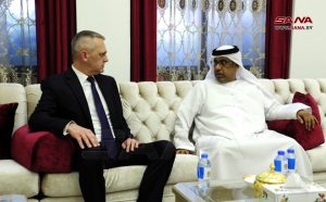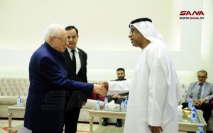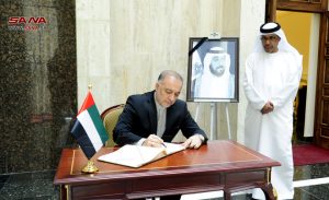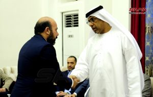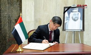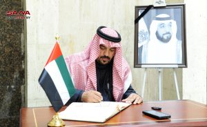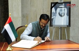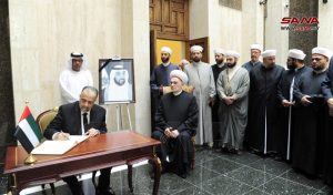 وكان في استقبال المشاركين بواجب العزاء القائم بأعمال السفارة الإماراتية بدمشق عبد الحكيم النعيمي وعدد من دبلوماسيي السفارة.