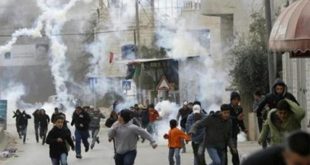 وأصيب عشرات الفلسطينيين أمس بالاختناق جراء إطلاق قوات الاحتلال قنابل الغاز السام عليهم في نابلس والخليل ومخيم العروب وقريتي الطيبة وعانين بالضفة الغربية.