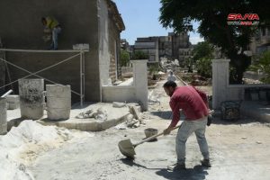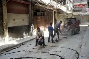 يواصل مجلس مدينة حلب تنفيذ خطة التعافي في قطاع خدمات حي قاضي عسكر والذي يشمل عدداً من الأحياء المحررة من الإرهاب عبر تأهيل البنى التحتية وصيانة الحدائق وإزالة الأنقاض وترحيل النفايات وقشط الشوارع والطرقات وإعادة تعبيدها.