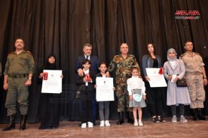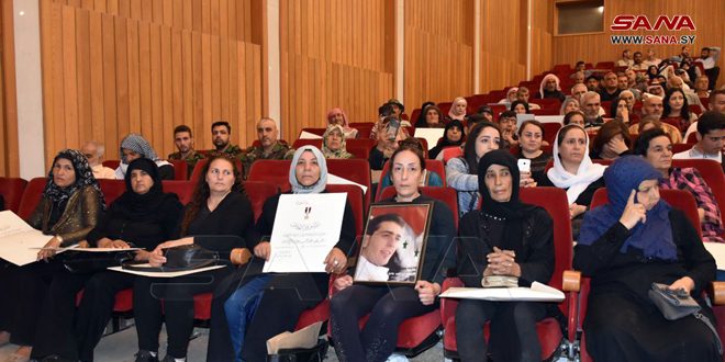 تقديراً لتضحيات الشهداء ووفاء لدمائهم الطاهرة كرمت محافظة حماة بالتعاون مع مديرية شؤون الشهداء والجرحى والمفقودين في وزارة الدفاع اليوم 300 أسرة شهيد.