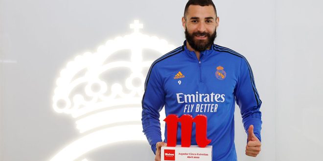 توج الفرنسي كريم بنزيما مهاجم ريال مدريد بجائزة أفضل لاعب خلال شهر نيسان الماضي.