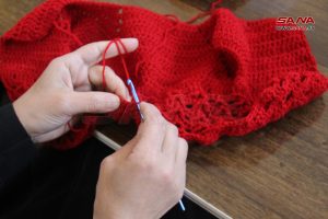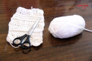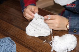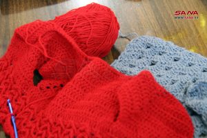 المدربة عائدة الفشتكي ذكرت “نساعد النساء على تعلم مهنة من خلال تدريبهن على حياكة الصوف بسنارة واحدة أو سنارتين ومساعدتهن على إعالة أسرهن”.