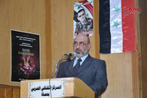 وقال الدكتور محمد حوراني رئيس اتحاد الكتاب العرب في سورية خلال كلمة ألقاها “إن الراحل قامة فكرية وأدبية مؤثرة في المشهد الثقافي والفكري ورحل بعد أن خلدته عشرات الأعمال العظيمة حيث أبدع في تقديم إنتاج غني عن تراث مدينته وأعلامها”.