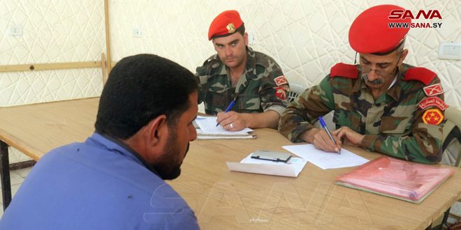 وذكر مراسل سانا في دير الزور أن لجنة التسوية في صالة العامل بمدينة دير الزور استقبلت اليوم عدداً من المطلوبين من أبناء المحافظة وسوت أوضاعهم بإجراءات ميسرة لافتاً إلى أن “المركز مستمر بالعمل ليتمكن جميع المشمولين بالتسوية من الالتحاق بالذين سبقوهم إليها من المدنيين المطلوبين والفارين والمتخلفين عن الخدمتين الإلزامية والاحتياطية”.