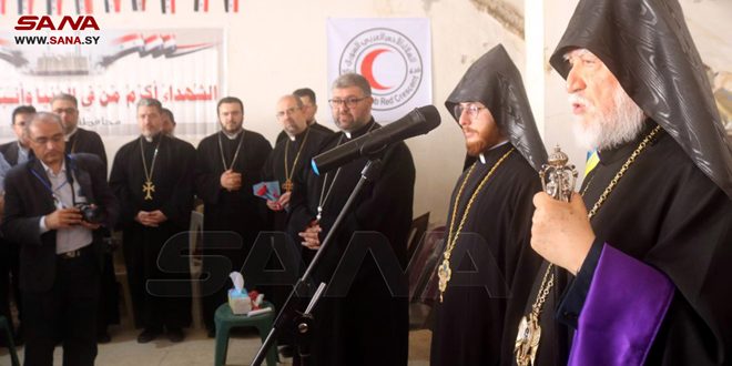 وتضرع الكاثوليكوس كشيشيان خلال الصلاة في الكنيسة إلى الله أن يكلل سورية قيادة وشعباً وجيشاً بالنصر المؤزر وهو يواجه أعتى معارك الحقد والظلم كما ترحم على الشهداء الأرمن الذين قضوا على يد الإجرام العثماني فكانت إحدى أبشع جرائم الإبادة بحق الشعب الأرمني الأعزل ليؤكد في ذلك حقده ودمويته واستهانته بالنفس البشرية وحقها في الحياة.