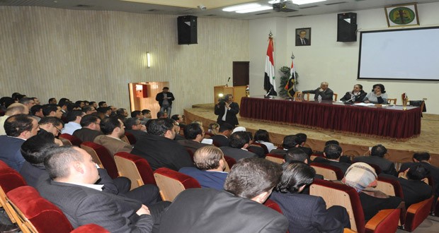 وقدمت المحاضرة حنان عيلبوني لمحة تاريخية عن تأسيس المصارف في سورية واستعرضت القوانين والمراسيم الخاصة بعمل المصارف ودور المصرف المركزي في الرقابة على المصارف والمؤسسات المالية.