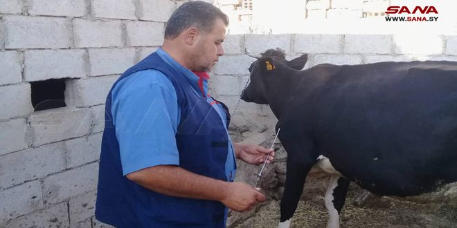 حصنت دائرة الصحة الحيوانية في مديرية زراعة درعا 36330 رأساً من الأبقار ضد مرض الحمى القلاعية.