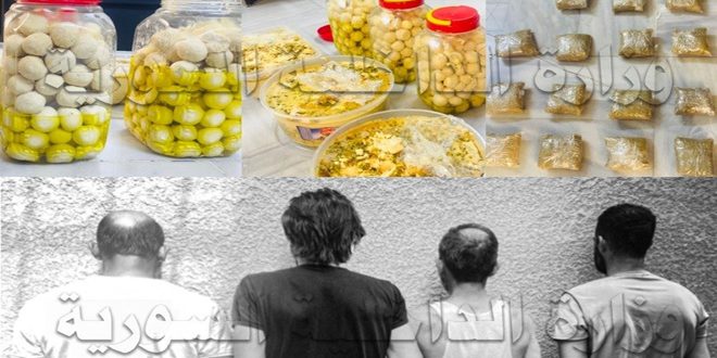 وأوضحت وزارة الداخلية في بيان تلقت سانا نسخة منه أن الفرع ضبط كمية 21 كيلوغراماً من مادة الكبتاغون المخدرة كانت مخبأة ضمن علب بلاستيكية ومواد غذائية (حلاوة ولبنة) وقام بمصادرتها.