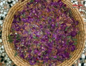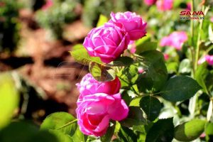 ومع ساعات الصباح الأولى ينطلق المزارع همام إبراهيم مع أفراد عائلته لقطاف محصول الورد الذي بدأ بزراعته منذ بضع سنوات وما يزال يتابع توسيع المساحة المزروعة به حسب وصفه والتي بلغت حاليا 2 دونم نظراً للفائدة والجدوى الكبيرة لزراعة الوردة الشامية التي تتعدد منتجاتها كماء الورد والمربى وشراب الورد والتي تشهد طلباً وإقبالاً كبيرين في السوق الأمر الذي شجع الكثيرين للتوسع برقعة زراعتها ولا سيما أن أراضي المنطقة ملائمان جدا لهذا المحصول النوعي.