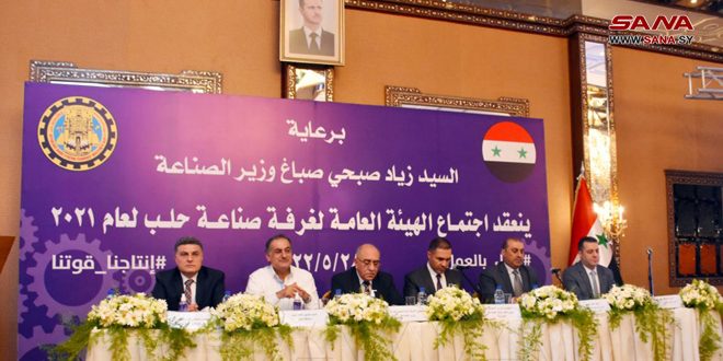 طالب أعضاء غرفة صناعة حلب خلال اجتماع الهيئة العامة السنوي بتوفير حوامل الطاقة وزيادة التغذية الكهربائية للمناطق الصناعية وتأمين مستلزمات الإنتاج الصناعي من المواد الأولية وخاصة خيوط الغزول القطنية والسماح باستيرادها.