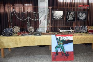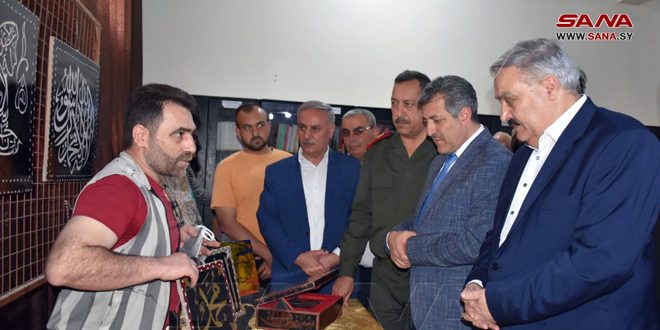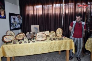 ضم المعرض الفني والتراثي الذي أقامه سجن حماة المركزي اليوم لنزلائه أعمالاً ومشغولات للخرز والخيزران ولوحات فنية ومقتنيات ومجسمات يدوية وتراثية.