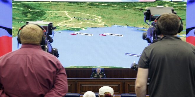 ونقلت روسيا اليوم عن رئيس مركز مراقبة الدفاع الوطني في روسيا ميخائيل ميزينتسيف قوله: “إن هناك 70سفينة أجنبية من 16 دولة محتجزة في ستة موانئ أوكرانية وهم خيرسون ونيكولاييف وتشيرنومورسك وأوتشاكوف وأوديسا و ويوجني ولا يسمح خطر القصف وخطر الألغام الذي تسبب به مسؤولو كييف للسفن بالخروج بحرية إلى عرض البحر”.