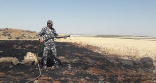 أخمد عناصر من فوج الإطفاء والدفاع المدني ومديرية الزراعة في درعا بالتعاون مع المجتمع المحلي أمس 5 حرائق التهمت نحو 48 دونماً من القمح و12 دونماً من نواتج الحصاد مع آلية حصاد حصادة في مناطق مختلفة من المحافظة.
