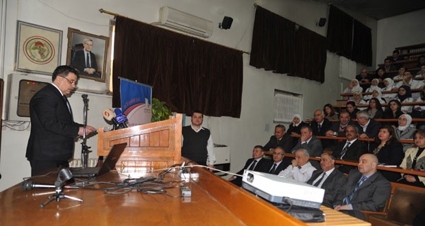 وفي كلمة باسم اساتذة كلية الطب البشري اشار الدكتور حسام شبلي الى دور المشافي التعليمية في تطوير التعليم الطبي وتقديم الخدمات الصحية المجانية للمرضى ولاسيما في هذه الظروف مؤكدا أن الاساتذة مستمرون بتادية واجباتهم والمسؤوليات الملقاة على عاتقهم رغم التحديات والظروف الصعبة التي تمر بها سورية.