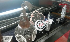 حرفة اكتسبها الشاب عمر حميدان بعد دراسته الأكاديمية بالمعهد الصناعي في دمشق تلاقت مع حب للعمل وذائقة فنية لدى الشاب باسم سراي الدين لتثمر عن نجاحهما بإطلاق ورشة متناهية الصغر لأعمال القص والرسم بالليزر قبل نحو عامين بمدينة السويداء.