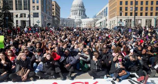 تظاهر مئات الأشخاص لليوم الرابع على التوالي في ماديسون كبرى مدن ويسوكنسن شمال الولايات المتحدة حيث قتل شاب أمريكي من أصول أفريقية يوم الجمعة الماضي برصاص شرطي في المدينة.