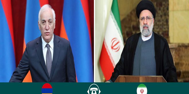 وقال رئيسي خلال اتصال هاتفي اليوم مع نظيره الأرميني فاهاكن خاتشاتوريان إن إيران ملتزمة بضرورة حل قضايا المنطقة وتسويتها بتبادل الأفكار والتعاون بين جميع دولها وعلى أساس المصالح المشتركة والاحترام المتبادل لافتاً إلى أن دعم وحدة الأراضي وحق السيادة لجميع الدول سياسة مبدئية لإيران.