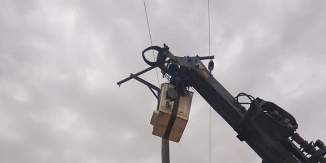 أنجزت الشركة العامة للكهرباء في محافظة الحسكة صيانة خط 20 ك.ف الذي يغذي عدداً من قرى ريف ناحية تل حميس والذي خرج عن الخدمة خلال السنوات الماضية جراء التعديات عليه من قبل التنظيمات الإرهابية.