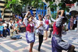 مواهب متنوعة من الفن التشكيلي والرقصات الشعبية والغناء والعزف على الغيتار اجتمعت ضمن حفل نشاط فني منوع لطلاب المركز الثقافي الروسي استضافه غاليري البيت الأزرق في سوق ساروجة بدمشق.