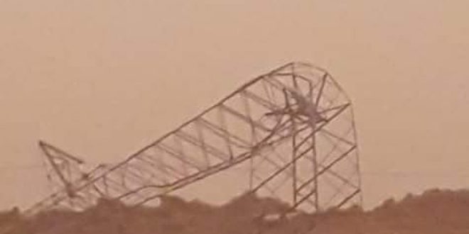 أدت العاصفة الغبارية في حلب لانهيار برج لخطوط التوتر العالي للكهرباء في منطقة مسكنة ما أدى لحدوث عطل على خط مسكنة-حلب 230 ك ف.