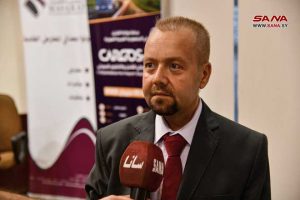 عبد العزيز كربوج مسؤول في الشركة السورية للطيران بين أن الخطوط الجوية السورية للطيران هي أول شركة ناقل حكومي ورغم الحصار الاقتصادي المفروض لا تزال موجودة وتتألق لافتا الى ان السورية للطيران تقدم عرضا للراغبين بالشحن عن طريق المعرض بحسم قدره 5 بالمئة للكيلوغرام الواحد.