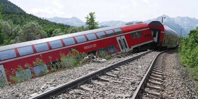 لقي ثلاثة أشخاص مصرعهم على الأقل وأصيب آخرون جراء انحراف قطار عن سكته في ولاية بافاريا جنوب ألمانيا اليوم.