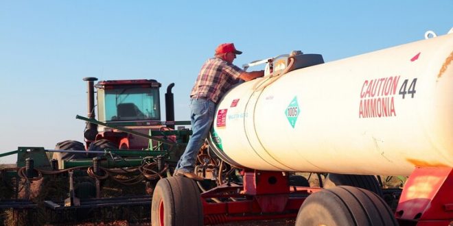يذكر أن مادة الأمونيا المستخدمة كسماد زراعي تعتبر سامة إذا تم استنشاق غازاتها.
