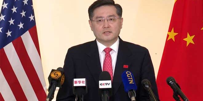 ونقلت وكالة شينخوا عن السفير الصيني لدى الولايات المتحدة تشين قانغ قوله في كلمة ألقاها أمام مركز جمعية آسيا في مدينة هيوستن بولاية تكساس الأمريكية إن “الطريق الصحيح للانسجام بين الصين والولايات المتحدة هو الاحترام المتبادل والتعايش السلمي والتعاون المربح للجانبين” مشيراً إلى أن البلدين “يتنافسان بالفعل في بعض المجالات ولكن هذه المنافسة يجب أن تكون نزيهة وصحية ويجب أن تجعل الجانبين أفضل وأقوى.. لا ينبغي أن تكون لعبة محصلتها صفر والفائز يظفر بكل شيء”.