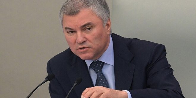 أكد رئيس مجلس الدوما الروسي فياتشيسلاف فولودين أن حزم العقوبات الأوروبية تثبت أن ترسانة وسائل احتواء روسيا والحد من تطورها من قبل الغرب قد استنفدت.