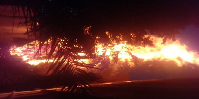 أخمد كوادر إطفاء حمص مساء اليوم حريقاً اندلع بأشجار نخيل في حي البياضة بمدينة حمص.