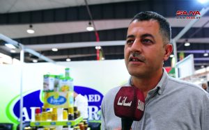 طارق الخطيب من شركة لصناعة زيت الزيتون تحدث عن مساهمة شركتهم بوجود زيت الزيتون السوري في الأسواق العالمية بمواصفات عالية منافسة فيما أوضح رائد النوري من شركة مختصة بالمأكولات الشعبية أن غالبية منتجاتهم مخصصة للتصدير وتلقى رواجاً في الأسواق العربية والعالمية.