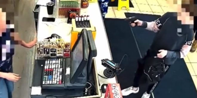 وذكرت شبكة ايه بي سي الإخبارية الأمريكية أن الفيديو الذي التقطته كاميرات المراقبة في محطة الوقود ببلدة هارتفورد يظهر المراهق وهو يمسك مسدساً عيار 9 ميليميترات ويوجهه نحو عاملة المحطة مطالباً إياها بوضع المال في حقيبته مشيرة إلى أن المراهق أطلق أعيرة نارية في الهواء للتأكيد على جديته بعد أن ترددت العاملة في إعطائه المال.