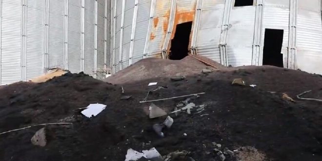 ونشر صحفيو وكالة نوفوستي مقطع فيديو يظهر المخازن المدمرة التي ألحق الجانب الأوكراني ضرراً بها عمداً والتي تضم كميات كبيرة من الحبوب.