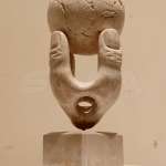 (حكايتنا مع الحجر) معرض نحت جمع الفنانين التشكيليين لطفي الرمحين ووليد مراد اليوم في غاليري زوايا في حي القصاع بدمشق.