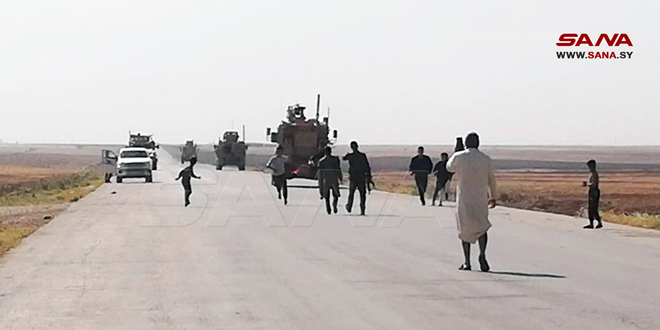 وأشارت المصادر إلى أن أهالي القرية أحرقوا العلم الأمريكي على الطريق الدولي أمام الرتل مرددين هتافات التأييد للجيش العربي السوري وتنديداً بالوجود غير الشرعي لقوات الاحتلال الأمريكي.
