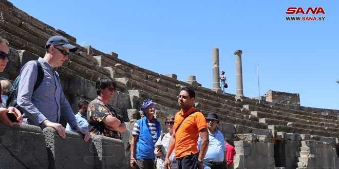 زارت مدينة بصرى الشام في ريف درعا اليوم مجموعتان سياحيتان من جنسيات مختلفة بهدف مشاهدة الأوابد الأثرية القديمة والاطلاع على تاريخ المدينة.
