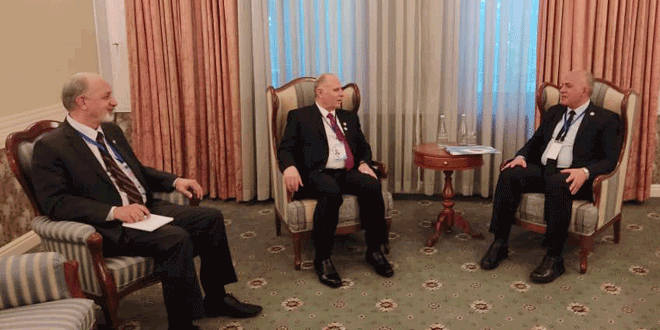 بحث وزير الموارد المائية الدكتور تمام رعد مع رؤساء وفود مصر وباكستان والعراق الواقع المائي وذلك على هامش المؤتمر الدولي الثاني لـ العقد الدولي للعمل بشأن المياه من أجل التنمية المستدامة 2018-2028 المنعقد في العاصمة الطاجيكية دوشنبه.