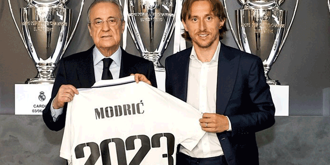 وذكر النادي في بيان على موقعه الرسمي اليوم أنه جدد عقد مودريتش لمدة موسم إضافي لينتهي في حزيران 2023 بدلاً من حزيران 2022.