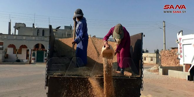 كاميرا سانا رصدت عمليات الحصاد وتعبئة المحصول لتسليمها إلى صوامع شنشار ومؤسسة إكثار البذار وفق عقود موقعة مع مزارعي القمح في قرية النقيرة بريف حمص والتي تأتي مع قرار الحكومة زيادة أسعار شراء القمح الذي يتم تسليمه إلى مراكز استلام الحبوب.