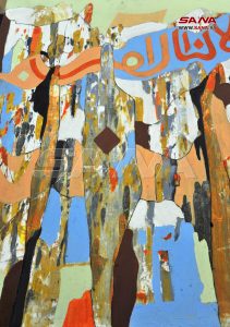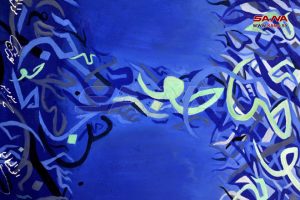 الفنانة الشابة مرام الحمديش المشاركة في ورشة الحروفيات بلوحة من طيف اللون الأزرق أشارت إلى استفادتها من المعلومات التي قدمها الفنان بشير بشير المشرف على الورشة وخاصة في تكوين الحرف العربي ضمن تكوين اللوحة التشكيلية.