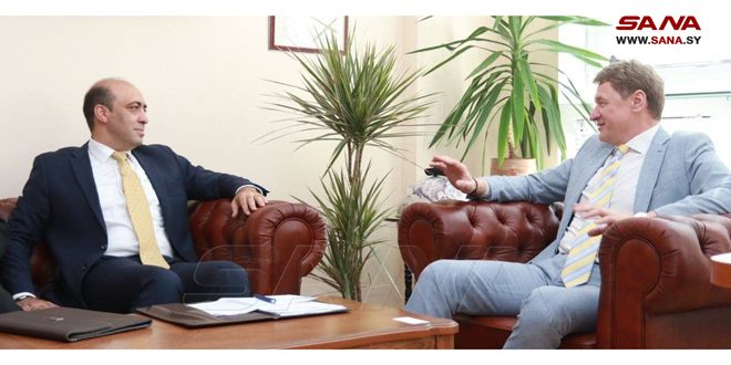 بحث السفير السوري في بيلاروس محمد العمراني مع نيكولاي باريسيفيتش مدير عام المركز الوطني للتسويق ودراسة الأسعار التابع لوزارة الخارجية البيلاروسية ونائب وزير الخارجية السابق سبل تعزيز العلاقات الاقتصادية والتجارية بين سورية وبيلاروس انطلاقاً من العلاقات السياسية المتميزة بين البلدين الصديقين.