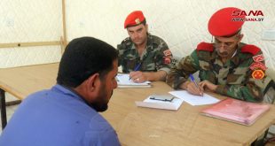 مراسلو سانا من مراكز صالة العامل بمدينة دير الزور وصالة الأسد بمدينة حلب وبلدة السبخة بريف الرقة الشرقي أفادوا بأن اللجان المعنية في المراكز المذكورة يستقبلون الراغبين بالتسوية من المدنيين المطلوبين والفارين والمتخلفين عن خدمة العلم والخدمة الاحتياطية ويتعاونون مع الأهالي لضمان وصول جميع المشمولين بالتسوية إلى المراكز تمهيداً لعودتهم إلى الطريق الصحيح وبدء حياة مستقرة وفاعلة في المجتمع.